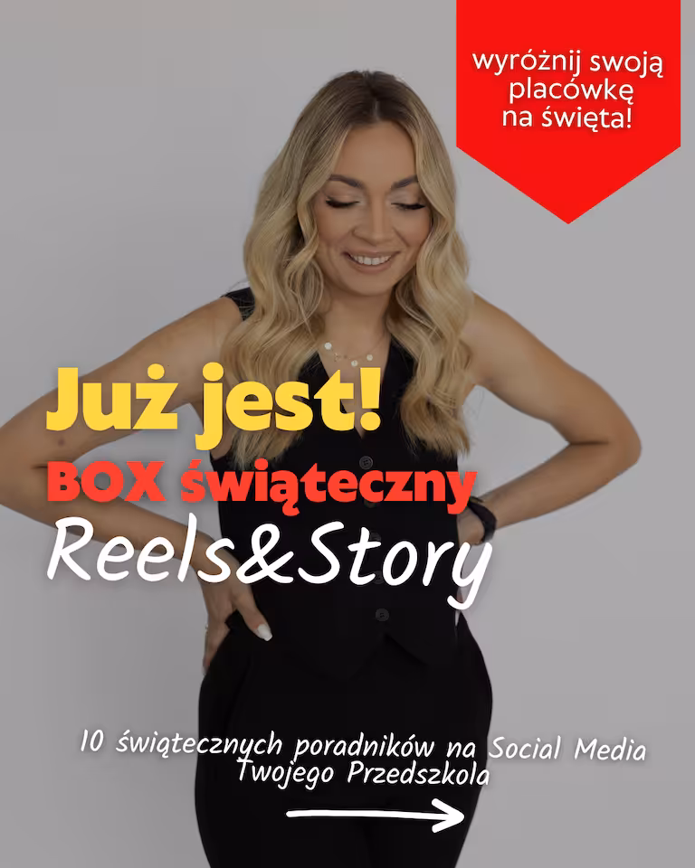 Stworzyłam 10 gotowych Reels & Story w formie świątecznych poradników, które możesz od razu wykorzystać w social mediach swojego przedszkola. To praktyczne, estetyczne i wartościowe treści, które budują wizerunek zaangażowanej i bliskiej rodzicom placówki.